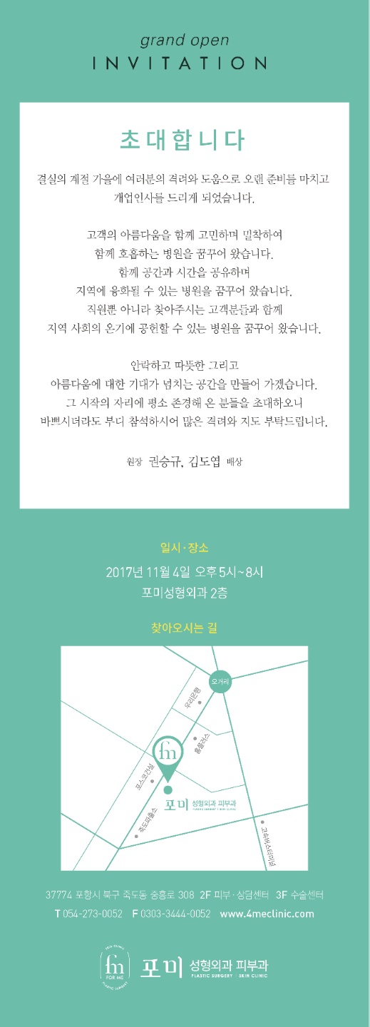 오랜 준비를 마치고 포미성형외과의원이 그랜드 오픈하게 되었습니다