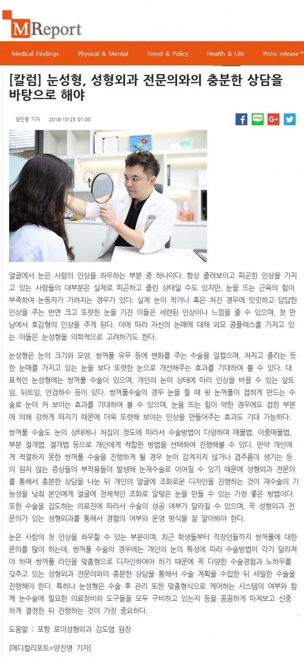 [MReport] 눈성형, 성형외과 전문의와의 충분한 상담을 바탕으로 해야 페이지 정보 작성자 포미성형외과 작성일18-10-25 09:21 조회2,136회 댓글0건 관련링크 이전글 다음글 목록 본문 - 댓글목록 등록된 댓글이 없습니다. 이전글 다음글 목록