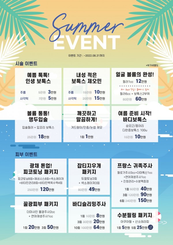 포미 7,8월 이벤트 페이지 정보 작성자 포미성형외과 작성일22-07-01 11:49 조회3,761회 관련링크 이전글 다음글 목록 답변 본문 포미 7,8월 이벤트 이전글 다음글 목록 답변