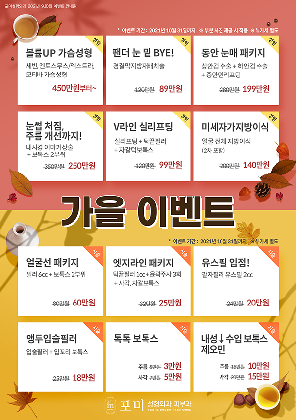 포미 9,10월 이벤트1 페이지 정보 작성자 포미성형외과 작성일21-09-01 15:45 조회3,254회 관련링크 이전글 다음글 목록 답변 본문 포미 9,10월 이벤트1 이전글 다음글 목록 답변