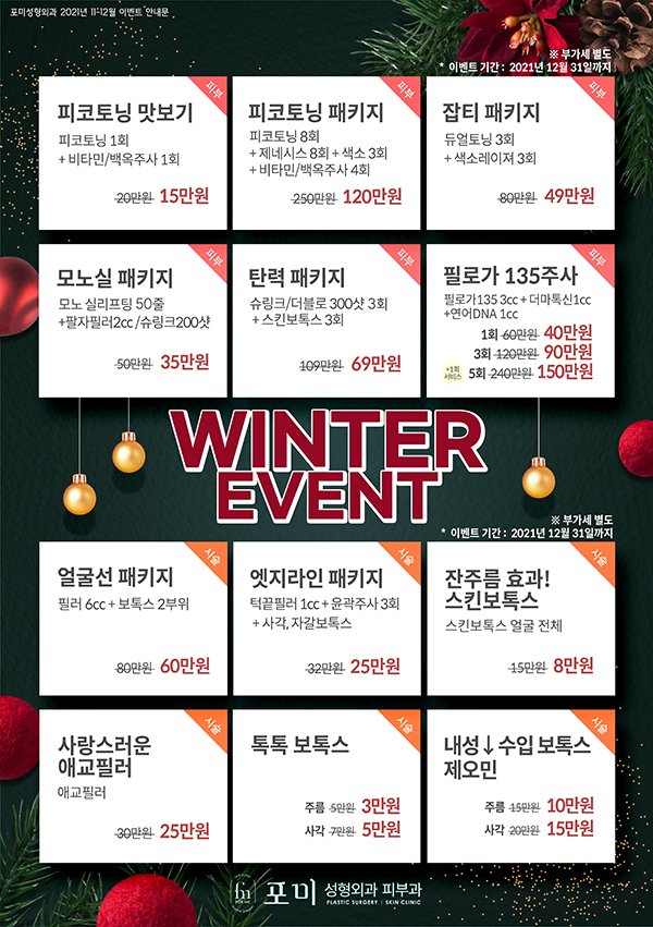 포미 11,12월 이벤트1 페이지 정보 작성자 포미성형외과 작성일21-11-01 14:07 조회3,793회 관련링크 이전글 다음글 목록 답변 본문 포미 11,12월 이벤트1 이전글 다음글 목록 답변