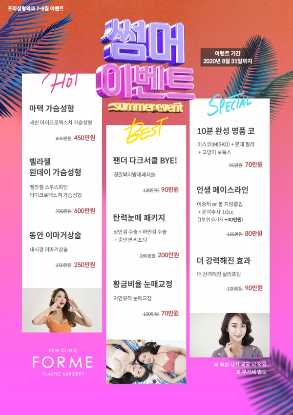#포미 썸머이벤트 2 페이지 정보 작성자 포미성형외과 작성일20-07-01 19:06 조회3,212회 관련링크 이전글 다음글 목록 답변 본문 #포미 썸머이벤트 2 이전글 다음글 목록 답변