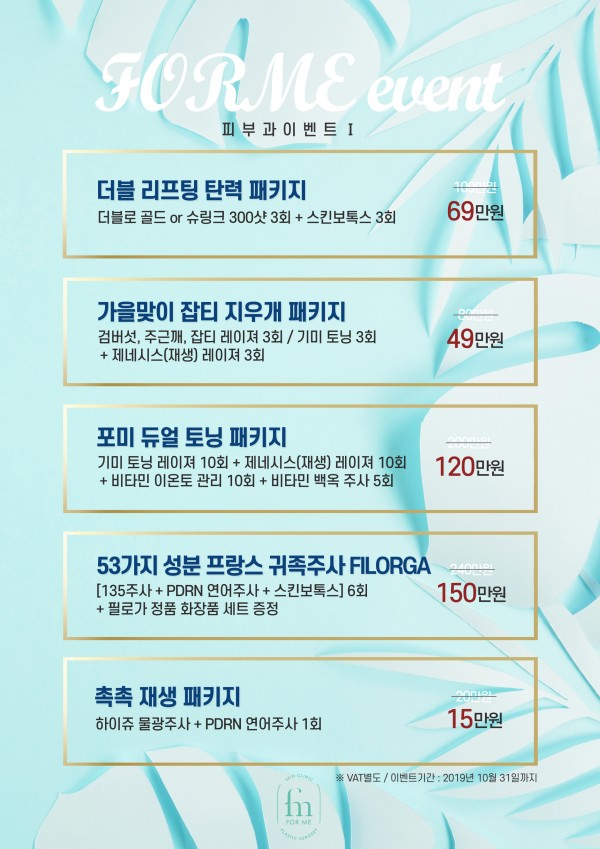 9-10월 피부과이벤트 #1 페이지 정보 작성자 포미성형외과 작성일19-09-02 10:47 조회2,683회 관련링크 이전글 다음글 목록 답변 본문 9-10월 피부과이벤트 #1 이전글 다음글 목록 답변