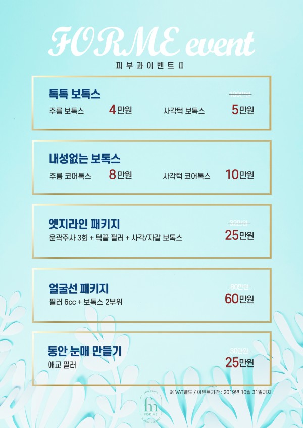 9-10월 피부과이벤트 #2 페이지 정보 작성자 포미성형외과 작성일19-09-02 10:47 조회3,413회 관련링크 이전글 다음글 목록 답변 본문 9-10월 피부과이벤트 #2 이전글 다음글 목록 답변