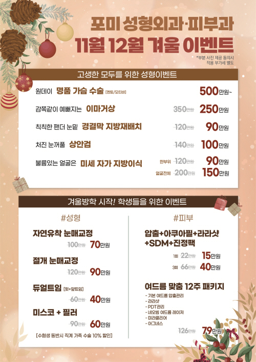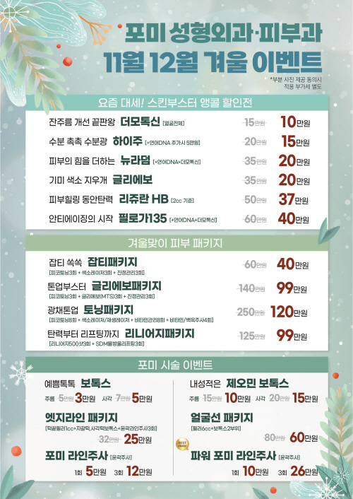 포미성형외과 11월,12월 겨울 이벤트 페이지 정보 작성자 포미성형외과 작성일23-11-02 18:59 조회3,626회 관련링크 이전글 다음글 목록 답변 본문 포미성형외과 11월, 12월 겨울 이벤트 이전글 다음글 목록 답변