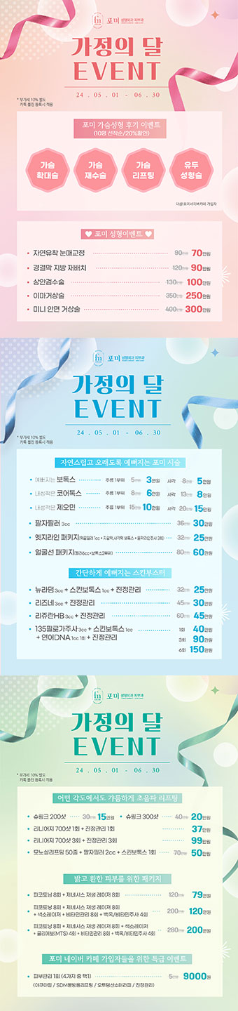 5-6월 가정의 달 이벤트 페이지 정보 작성자 포미성형외과 작성일24-04-30 17:13 조회1,413회 관련링크 이전글 다음글 목록 답변 본문 5-6월 가정의 달 이벤트 이전글 다음글 목록 답변