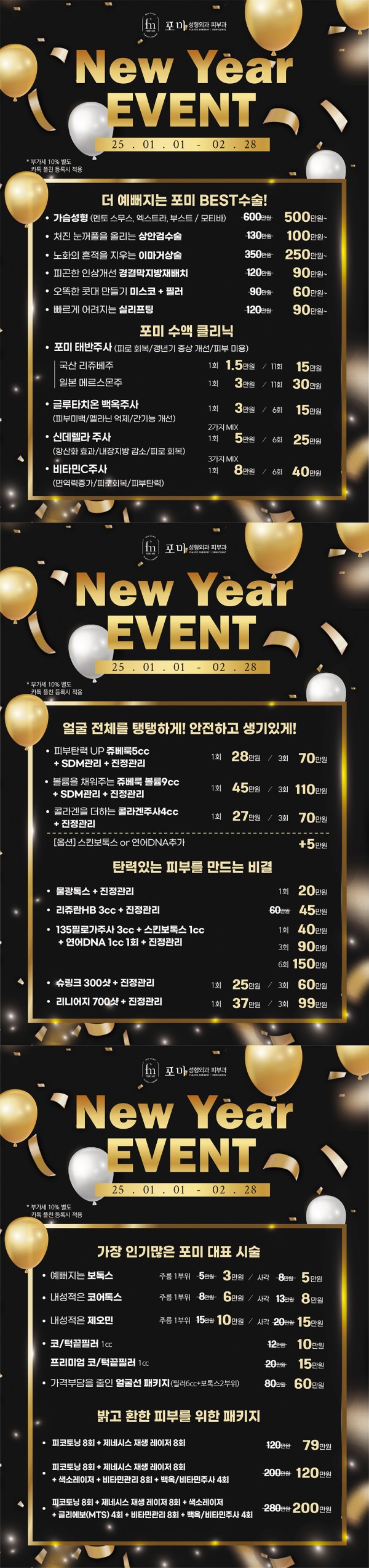 2025 New Year Event 페이지 정보 작성자 포미성형외과 작성일24-12-31 11:44 조회2,251회 관련링크 이전글 다음글 목록 답변 본문 2025년 맞이 새해 이벤트 입니다! 이전글 다음글 목록 답변